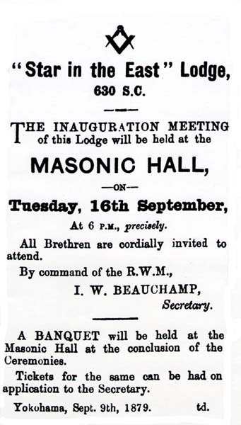 From the Japan Gazette of 9 and 16 September 1879 Note the lodge number.