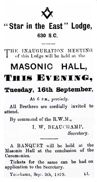 From the Japan Gazette of 9 and 16 September 1879 Note the lodge number.